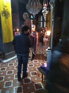Περί το τέλος της Θείας Λειτουργίας ήρθε να βοηθήσει τον ιερέα μας ο εφημέριος του Ιερού Ναού Αγίου Ισιδώρου Βροντάδου.